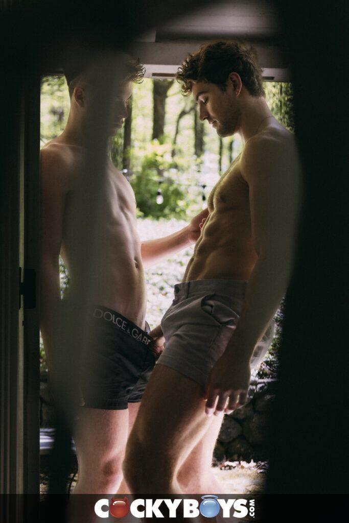 “Mike Monroe and Oliver Carter hook up outside but inside they really connect, fucking as though it was meant to be. When Oliver first sees Mike playing with himself on the patio, he comes out to blow him and Mike soon reciprocates with hungry energy. This makes Oliver want his ass indoors where he eats him out and fucks him to bring out that smile of pure pleasure on Mike’s face.