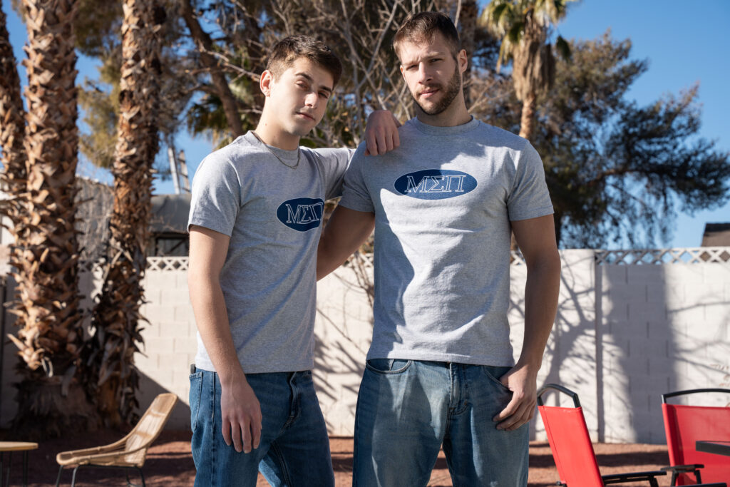 “When this group of college pals gather for a chill hang by the pool, it’s time for a little limbo! Joey Mills brought his new boyfriend, but that doesn’t stop Arno Antino from squeezing his ass as he goes for the hug, and Joey checks out his buddy’s bulge as Arno gets low. The pair hide behind the grill, and Joey surreptitiously sucks the top. They head inside to be sneaky, but get discovered by Joey’s BF when Arno pounds Joey against the windows! There’s no more need to be cautious, so Joey bounces on Arno’s dick, then gets drilled over an ottoman before cumming as Arno pounds him on his back, then drinking the top’s jizz.”
