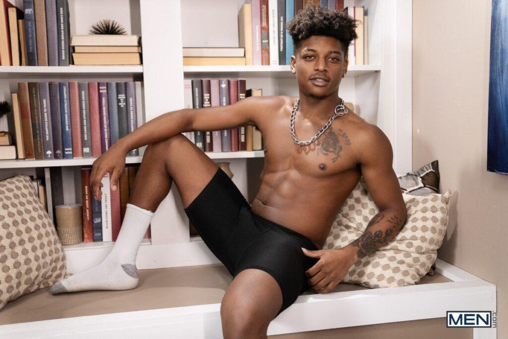 “Ty Santana and Kai Taylor try to get a threesome happening during movie night with Kai’s hot girlfriend, but she shuts them down. The guys are still horny, so as they play a VR game, they start jacking off. When the girl finds a double-ended stroker in the bathroom, she brings it to Kai and tells him to have fun, and he puts it to good use! He and Ty “spit-roast” the toy, then Kai bends over to get fucked. Kai rides the top, then takes it piledriver after the guys lick each other. The bottom orgasms as his buff roommate drills him on his back, and Ty cums on his face!”