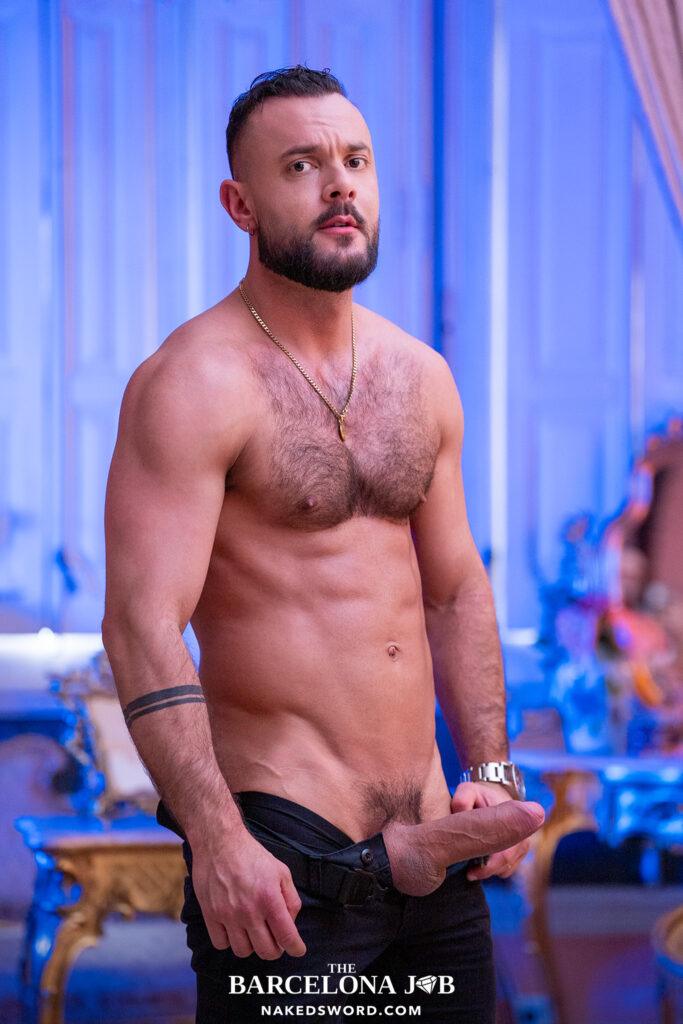 “Unexpected complications with Sir Peter and Rhyheim Shabazz’s plan to steal the world-famous NakedSword Diamond has led to the duo being apprehended. Lucky for them though, museum security guards Allen King and Hiuri Cruz are more interested in what’s in their pants than they are in turning them over to the authorities. Happy to reveal their concealed artillery, Sir Peter and Rhyheim use their oversized dicks to fuck the watchmen in the middle of the museum. Then, only after completely stretching out the muscular guards’ tan-lined asses and cumming all over their faces, Sir Peter and Rhyheim seize the opportunity to make their great escape.”