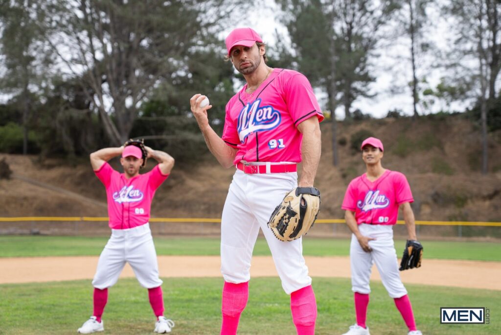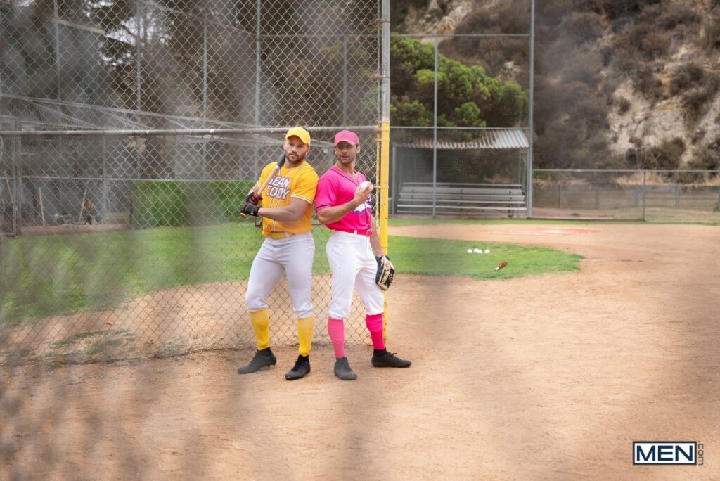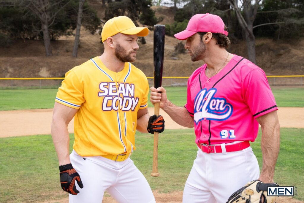 It’s Men versus Sean Cody at the ball field, and both sides are here to play! Sean Cody’s River North is cocky as he steps up to the plate, but Men pitcher Dom King and his team have some tricks up their sleeves. At the end of the game, the Men celebrate their victory in the locker room, while River grumbles about the loss. But when he finds the hot pitcher’s jock strap, he sniffs it and tries it on… till Dom catches him. The pitcher checks River out, and soon is pounding him up against the lockers. River rides the top and takes that dick in piledriver, then Dom fucks the bottom till they both cum.