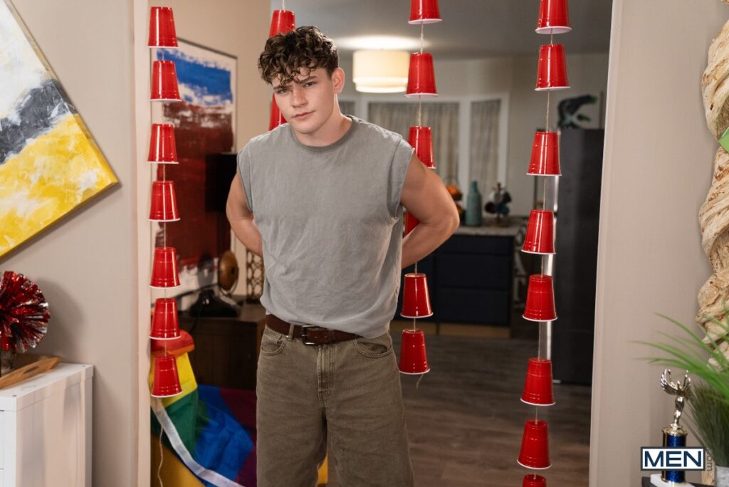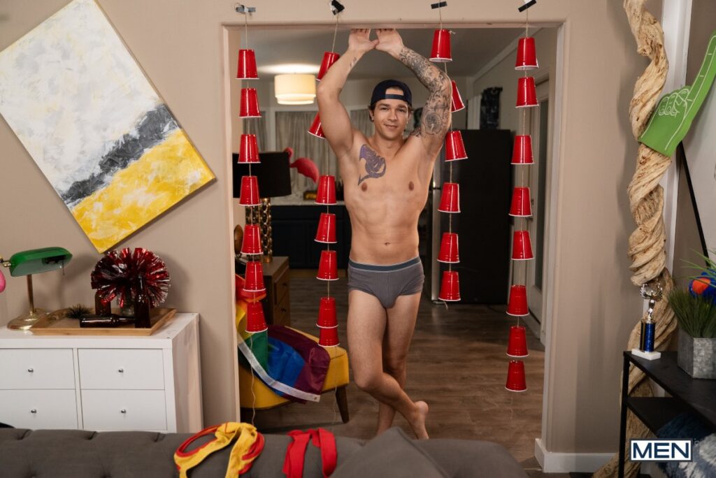 Not only have Oliver Marks and Carter Collins left the frat house a huge mess, they completely ignore Jayden Marcos when he asks them to clean up, not even looking up from their video game. Jayden tests their focus by putting his cock in their faces, their mouths, and even in their holes, and the guys still don’t stop playing for a second! Frustrated, the top finally turns off the game and tells the bottoms to suck him. Oliver gets on top of Carter so Jayden can fuck them back and forth, then the guys form a train. Oliver and Jayden hoist Carter between them as the horny bottom takes Jayden’s cock, then curly-haired Oliver rides Jayden and sucks Carter. The guys swap spots till Carter cums as Jayden drills him on his back, and Oliver and Jayden shoot hot loads all over him!