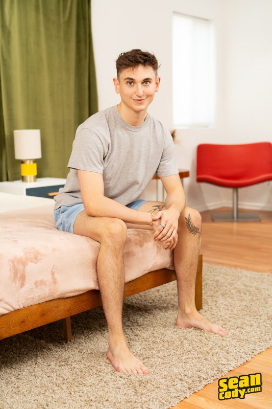 Adonis and Oliver eagerly strip out of their shirts and shorts as they kiss on the bed. Tattooed Adonis is quick to suck the curly-haired top, and Oliver puts him on all fours to penetrate him before Adonis climbs on top. The guys are super into each other as Oliver fucks the bottom on his back, then they lie down and stroke their dicks. Oliver is the first to cum, then fingers Adonis until he blows his load.