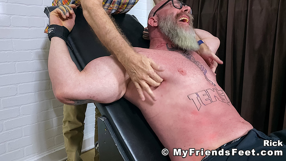 Slick Rick is back and he is ready to take an absolute endurance test of tickling! I secure him in the tickle chair and begin my tickle attack to get the laughter rolling. From that point, Rick doesn’t stop laughing for the next 30 minutes! Yes, 30 minutes of tickling on this ticklish giant! But we all know that Slick Rick loves being tickled so I don’t think he was complaining too much!