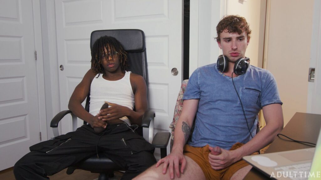 Ryan is embarrassed but Jade is unbothered as he casually suggests that they take advantage of the situation by BOTH jerking off. After some hesitation, Ryan agrees, which leads to them both jerking off side-by-side. But then it’s game on as they become so horny that they both convince themselves to go even further…
