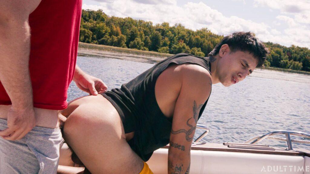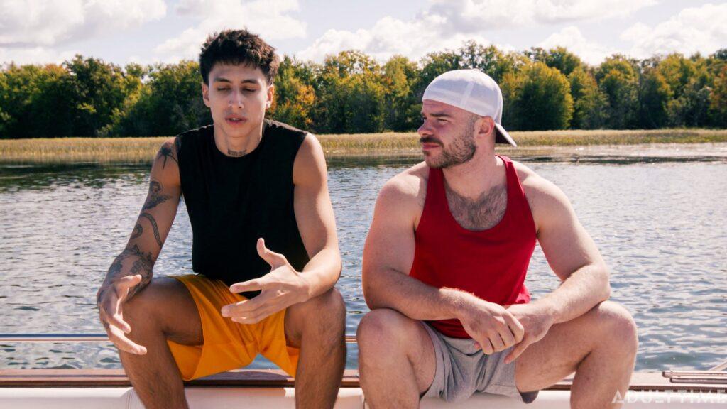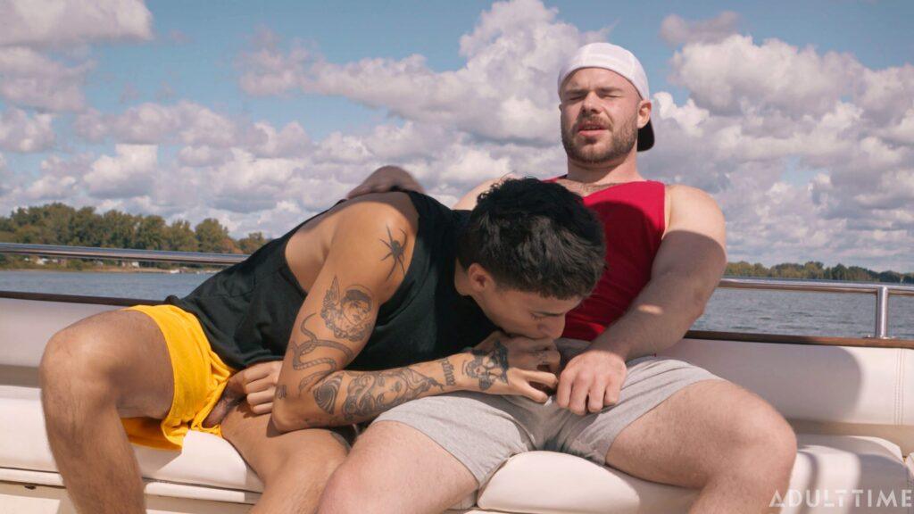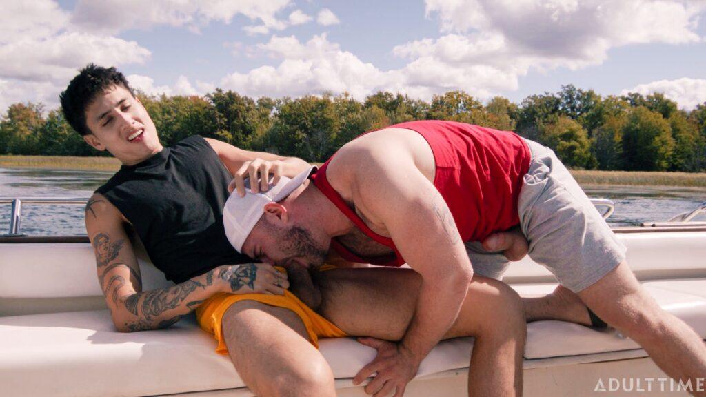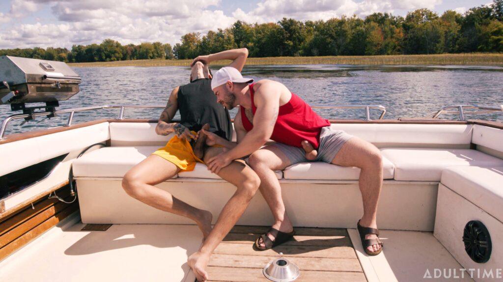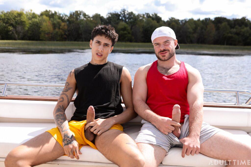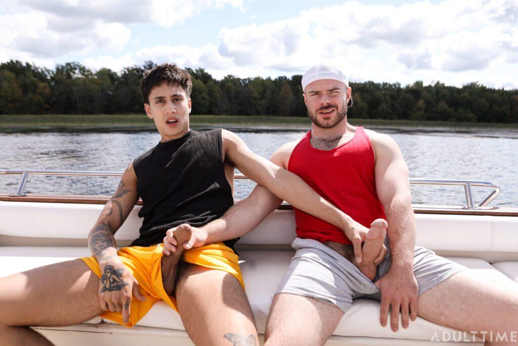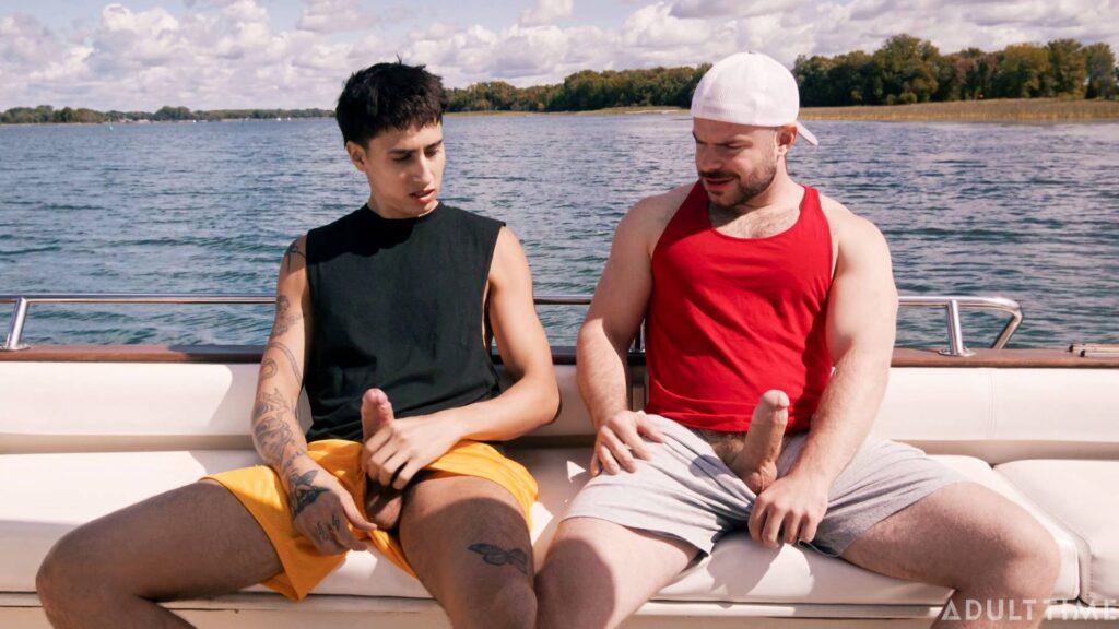 Christian and Austin (Marcus McNeil and Angel Elias) are two best buds who are on a joint family vacation, staying near a waterfront. Today is a special day, however, because they’re taking the boat out to link up with some hot chicks they met the day prior, who promised to meet them out on the water. But when the boys arrive at the meeting place, they soon realize that they’ve been stood up! To make matters worse, they were so psyched to pound some pussy that they’ve both got raging hard-ons now… so they need to find SOME way of busting a nut. That’s when these two buddies decide to jerk off together on the boat, which eventually leads to them rocking the boat in some other, totally not gay ways.