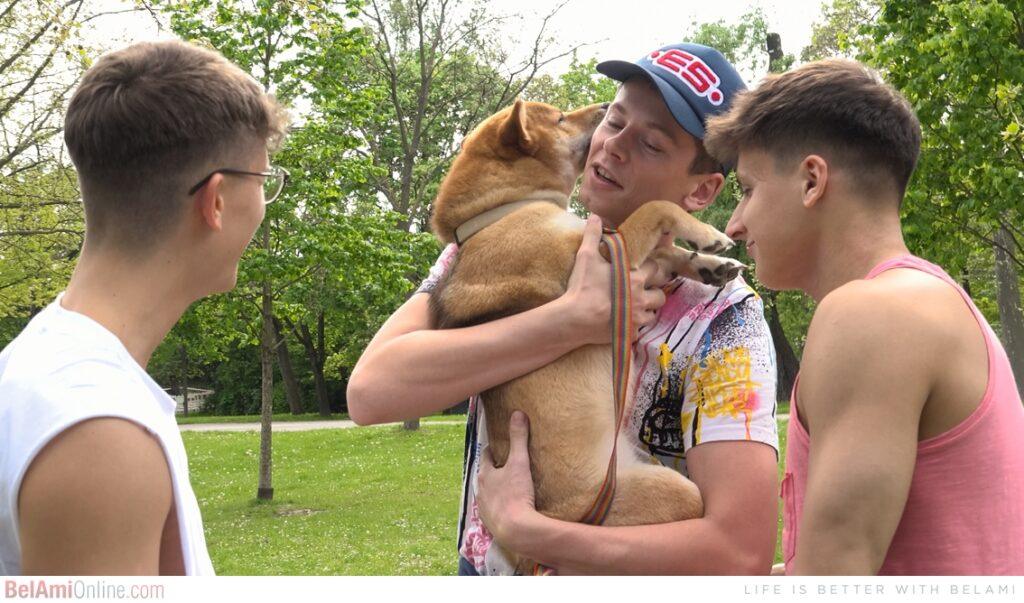 After taking Xiaomi for a little play in the park, the guys manage to hand him off to Jerome to take care of while they head off to take care of each other. Billy and Josh make the cutest couple in this scene. Tender, romantic, innocent, all the things we love to see in our models, paired together with horny and sexy and we always get a winning combination. Josh is the top in today’s scene as we appropriately start off in doggy position..