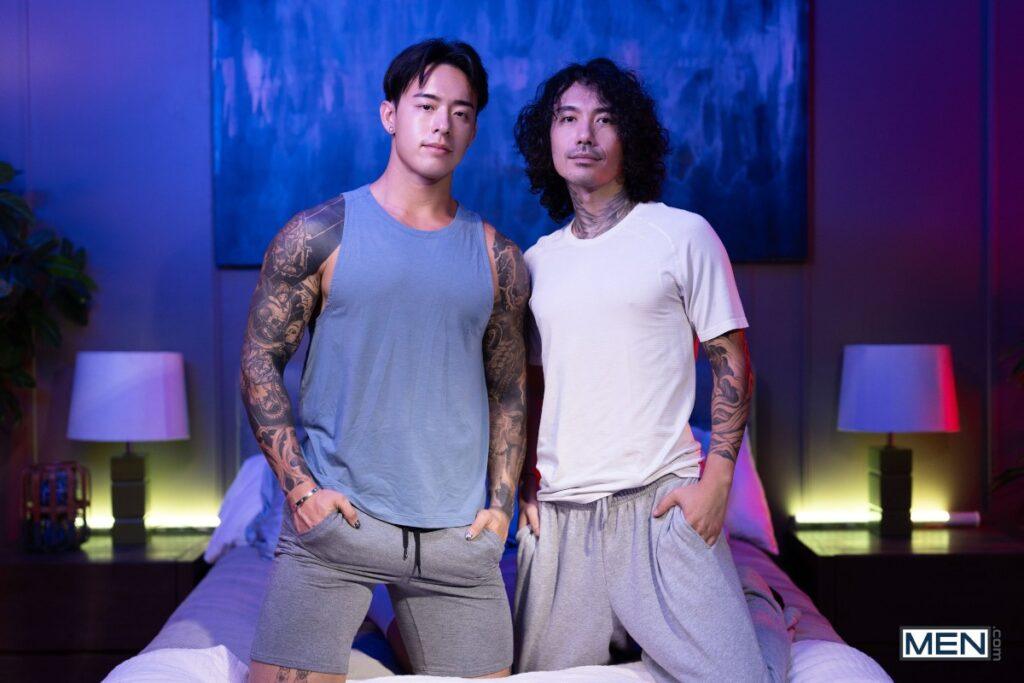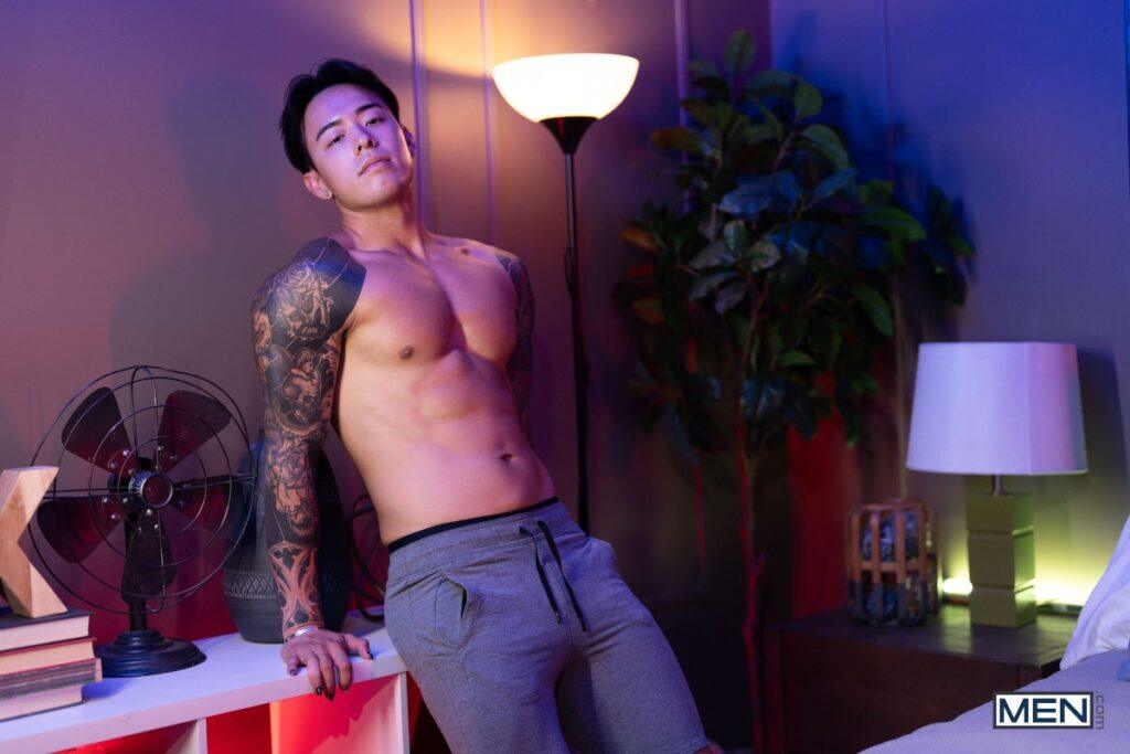 Curly-haired Ocean Hanx is horny, but his clean-cut BF Titus Low is busy gaming. Titus’s cock is twitching in his briefs, and he tells Ocean to cum and get it. Ocean strokes that cock and uses it to scroll porn on his phone, then sucks Titus until the top is horny and just has to put the bottom on all fours and fuck his hole. The scruffy-faced bottom rides Titus’s cock, then the tattooed hunks fuck hard till Titus cums on Ocean’s face as the bottom jacks off.