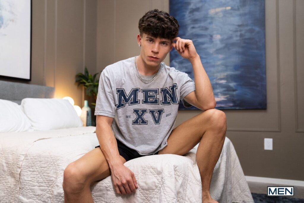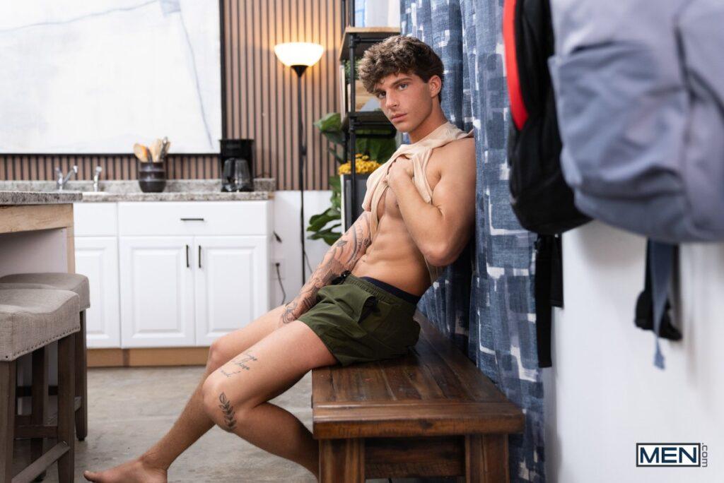 When Drake Von gets a call from his side bitch and stops fucking his GF to answer, she gets his attention by sticking her finger up his ass… and he can’t believe how good it feels! The next day, he goes looking for more anal stimulation, and before long he’s fucking himself on the counter with a cucumber. That’s when his roommate Leo Levine walks in, and although Drake claims “It’s not what it looks like,” Leo offers to fuck Drake instead. The new bottom loves taking that dick, and he sucks Leo, then moans super loudly as he rides him. Leo bends Drake over the counter, then pulls out and both guys shoot huge loads… just as Drake’s GF walks in.