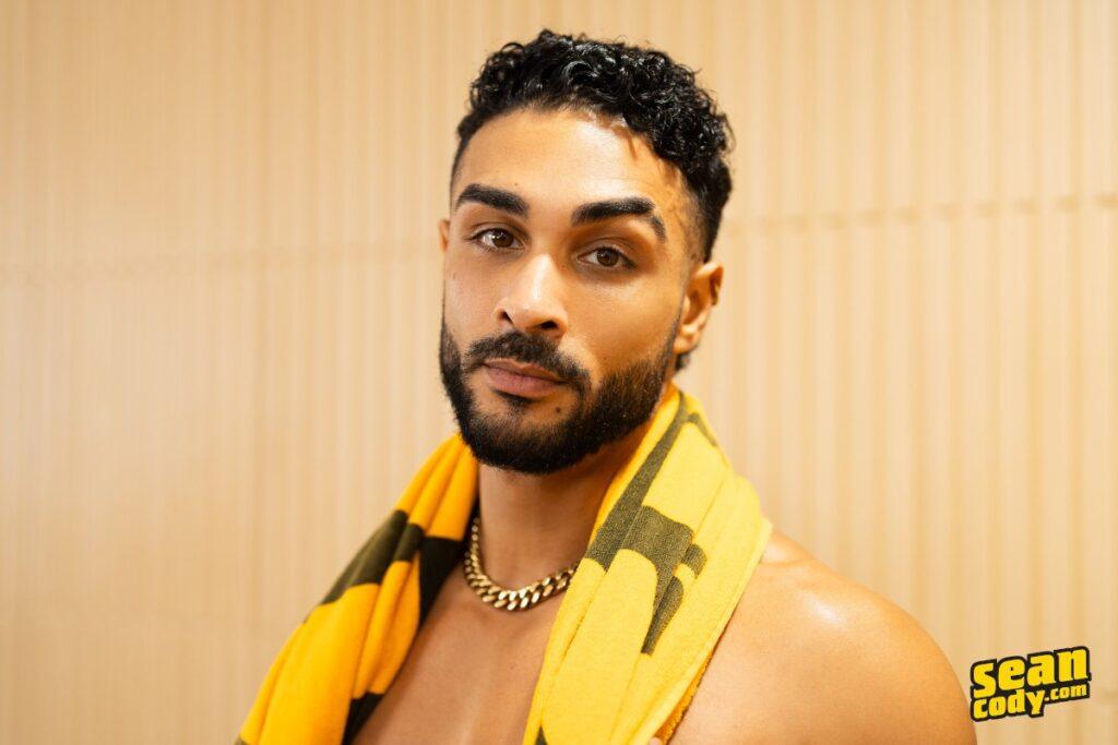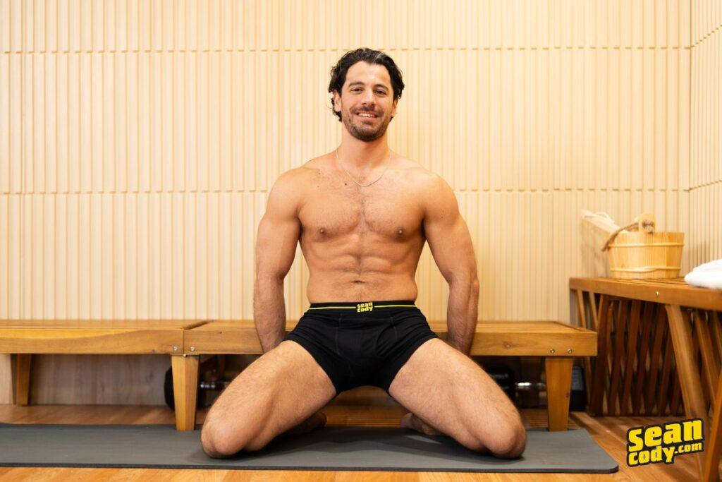 Paul is already hard as he strips off his briefs in the sauna, sniffing them and running his hands over his muscular chest. He covers himself just as Diego enters, but as the guys make intense eye contact, Paul pulls his towel away, and Diego crosses the room to suck him. The horny top soon rims and penetrates Paul against the wall, then fucks him on his back on the floor as they kiss passionately. Paul wants to taste Diego’s cock, then shoots his load as he rides him on a bench before taking the handsome top’s cum in his mouth.