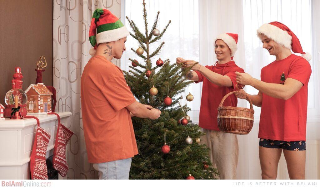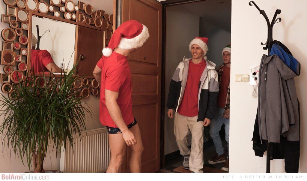 All good boys get gifts for Christmas, so it seems that Landon must have been a very good boy all year, as he manages to score 2 gifts this Christmas! We had originally planned a different combination for this year’s Christmas DP, but one of the guys had a little incident (nothing permanent or to worry over) the day before filming, and we had to ask around for volunteers to take his place. Even though Landon is not that experienced, he put his hand up to save the day, so here we have him with Charlie and Timmy.