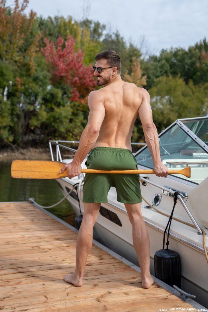 A day at the lake with bareback boaters Felix Trainor and Ali Rush isn’t complete without an outdoor nut on the water. Ali doesn’t even wait to get back to shore before pumping his big dick inside Felix’s mouth and rimming his buddy’s hole. The two then fuck raw across the boat, with Ali burying his hairy cock inside of Felix’s ass until both of the muscular men are drained, making out, and snowballing their nut.