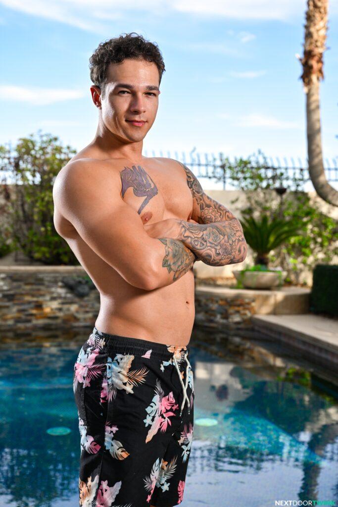 Seth Peterson is house sitting and invites his buddy Jayden Marcos over to join him for a pool day. The guys both like what they see when they’re changing into their suits, then the chemistry builds even more when they rub each other down before swimming. The tension breaks after their swim and the two finally get what they’ve been wanting all day.