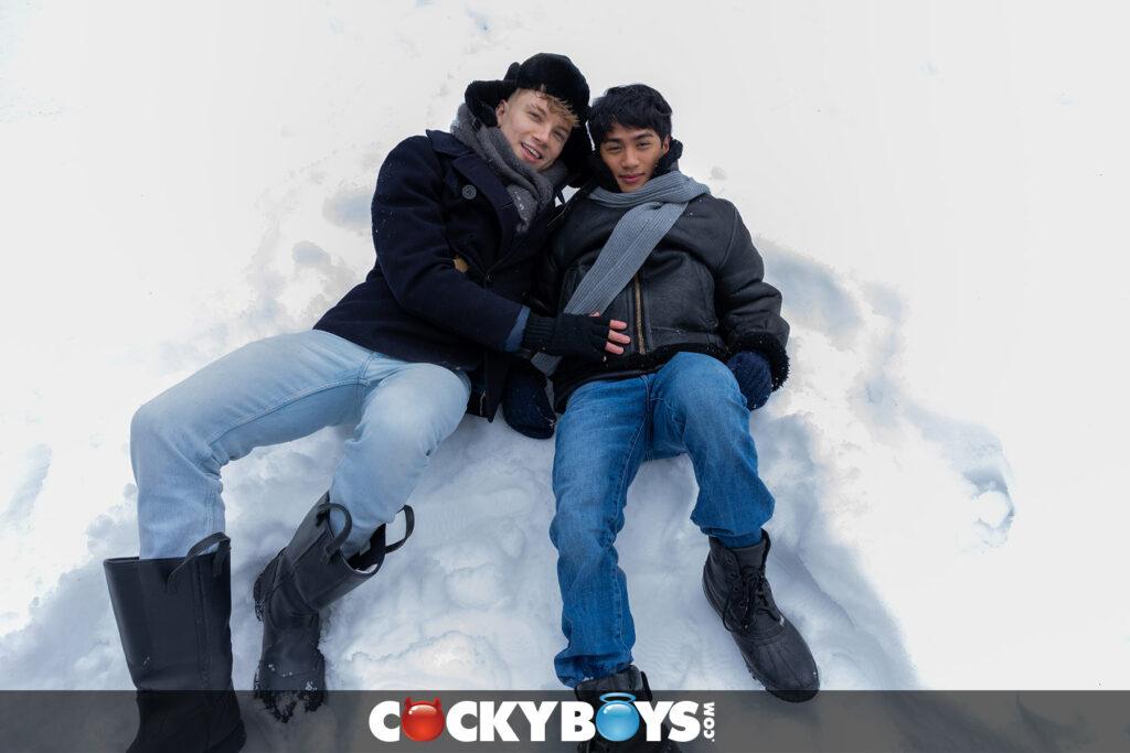 Caden Dior loves a snow day, but Luca Knight doesn’t and grudgingly joins him in some outdoor fun. Luca does love what comes after the frolicking: getting fucked by Caden! In fact, he starts things up as they strip and kiss in front of a fire. Luca sucks Caden and bends over so he can rim and finger his hole when he spreads his ass cheeks—and take his cock