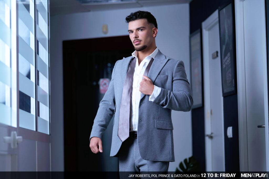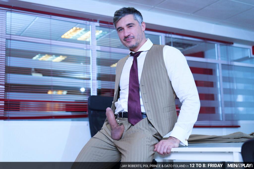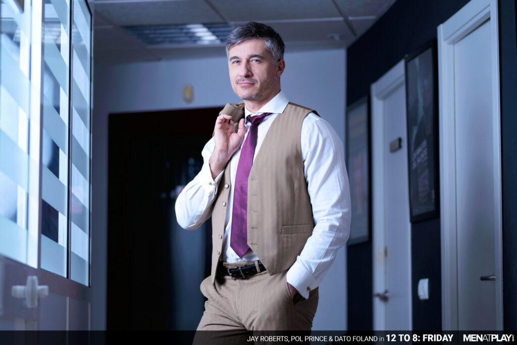 After taking turns deep-throating Jay’s juicy cock and then each other, the ever sexy Dato, who has worked with Jay in the past in “Loosen Up,” is ready to do it again. And, after eating Jay’s hole, Dato shoves his equally big and thick 8-inch, uncut cock inside. Even though Pol is the youngest, he wants to be dominant too. He puts Dato on his back on the conference table and gives him a good, deep dicking of his own, followed by Jay.