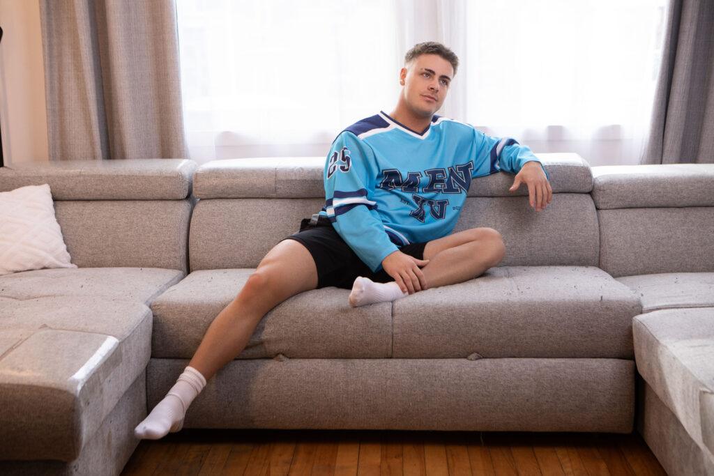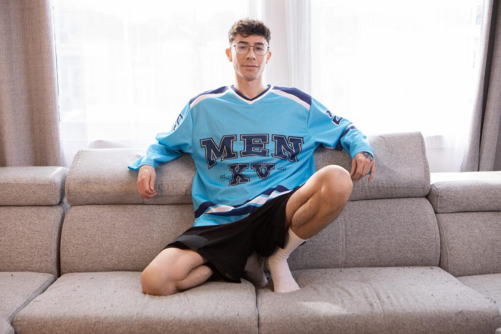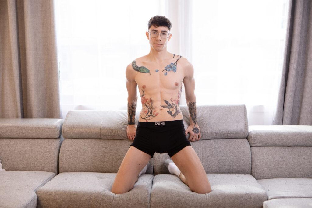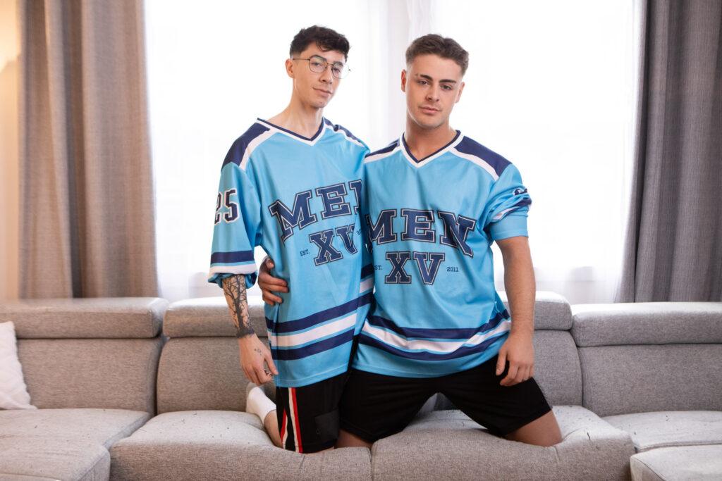 Vincent O’Reilly’s having some guys over to watch the game, and he notices that after his shorts slip down a little, his friend Cole Black got hard checking out his ass! Instead of bringing Cole a bev like the other buds, he brings him a very special can with a stroker inside, then pulls out Cole’s dick and works him with the toy. Cole follows Vincent to the kitchen and uses the bottom’s hole as Vincent bends over the fridge. Vincent sucks Cole while their friends are none the wiser, and the top bends Vincent over the counter. The bespectacled bottom rides Cole on the floor, then cums as he gets fucked on his back before taking a hot load on his glasses.