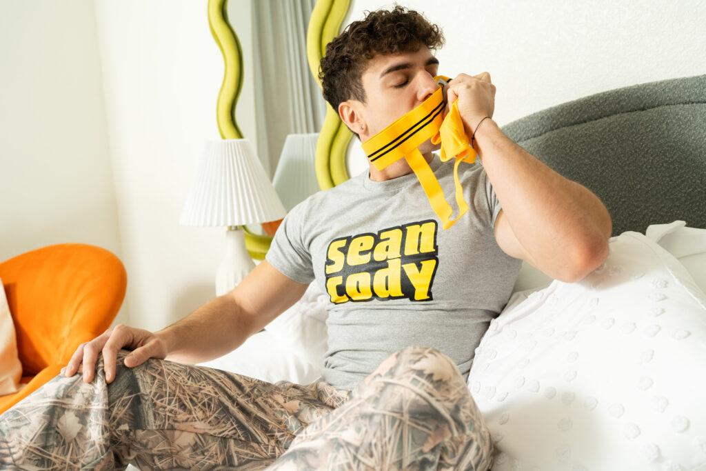 British hunk MrDeepVoice is back, and he’s joining handsome Channing in the bedroom where the guys kiss on the bed. Channing pulls down MrDeepVoice’s jock and sucks his cock, then sits on his face so they can 69. Curly-haired Channing rides the top long and hard, then gets drilled on all fours before lying back to take every inch. The bottom cums, and MrDeepVoice pulls out to shoot a big, thick load on him.