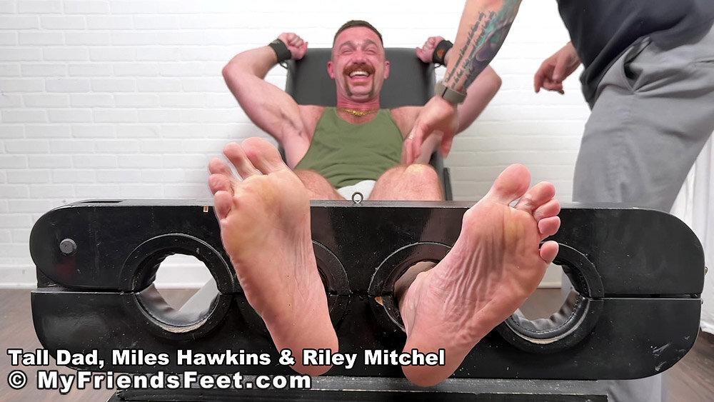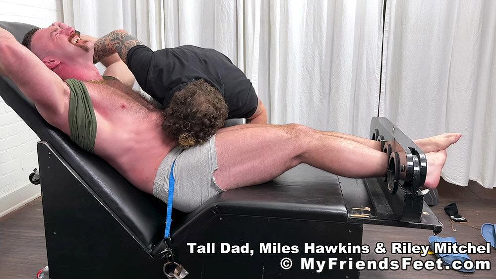 TallDad finds himself in the tickle chair with Riley Mitchel, Miles Hawkins, and myself ready to tickle the hell out of him. I must say that he has a lovely singing voice considering he was singing his way through this whole tickle session! He tried holding in his laughter, but it didn’t last long at all. Some of the things that came out of his mouth were quite hysterical! This was a lot of fun!